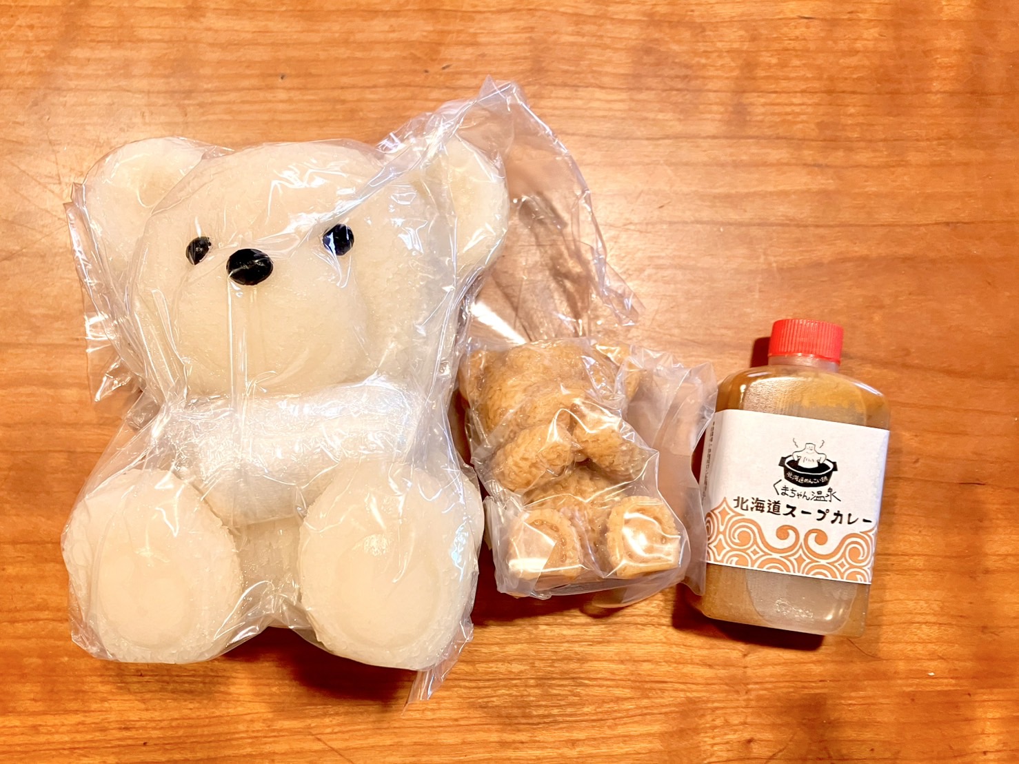 白くまちゃん、味噌味のベビーくまちゃん、北海道スープカレーのタレが入っていた。