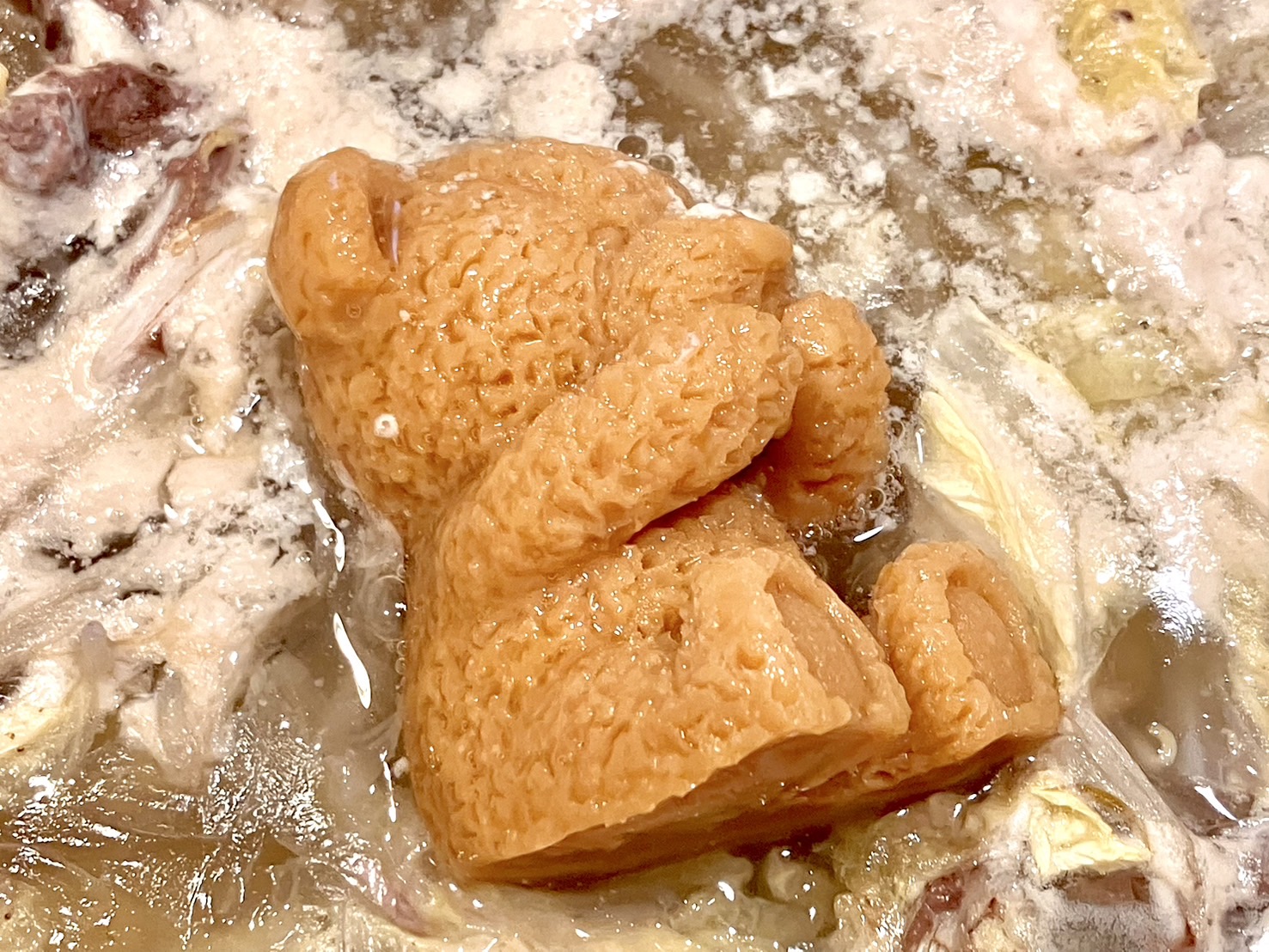 まずはそのままいただいてみた。豆乳出汁というだけあって、茶くまちゃんと比べるとまろやかな味だ。水を少なめにしてみたのだが、やっぱりスープそのものの風味は控えめだったかも。