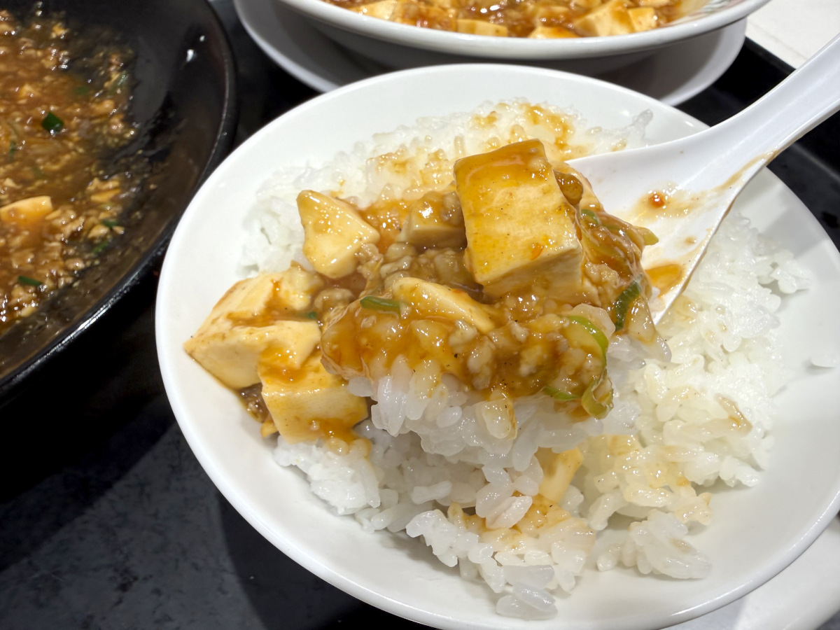 具体的に言うと最も強いのは肉の旨味で、これが牛肉と豚肉をベストバランスで調合した成果なのかもしれない。スパイスや香辛料よりも旨味そのものをダイレクトに感じる麻婆豆腐だ。