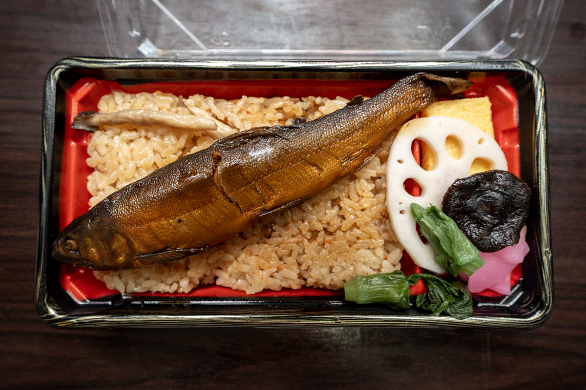 ここでは鮎の塩焼き弁当と、鮎の甘露煮弁当を買える。どちらも美味いのだが、個人的なおすすめは甘露煮だ。お値段1550円。