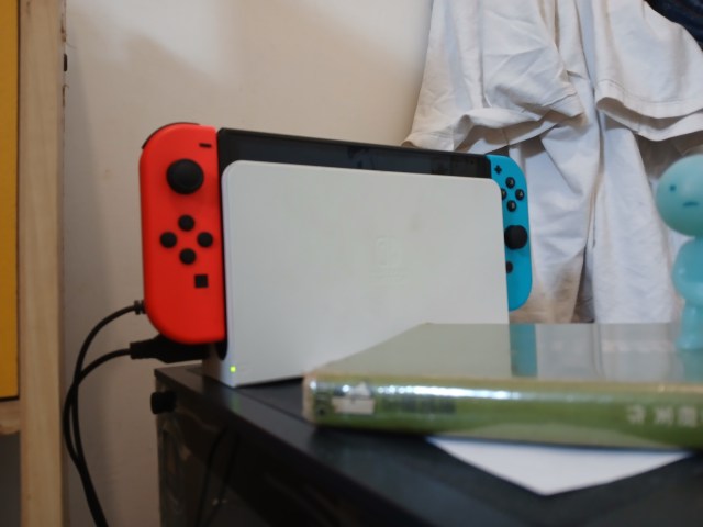 前回の記事と変わらず、今回も使うのは「Nintendo Switch」の有機ELバージョン。どでかい画面の両方にコントローラーがついてる。まさにポータブルゲーミングPCの形そのもの。