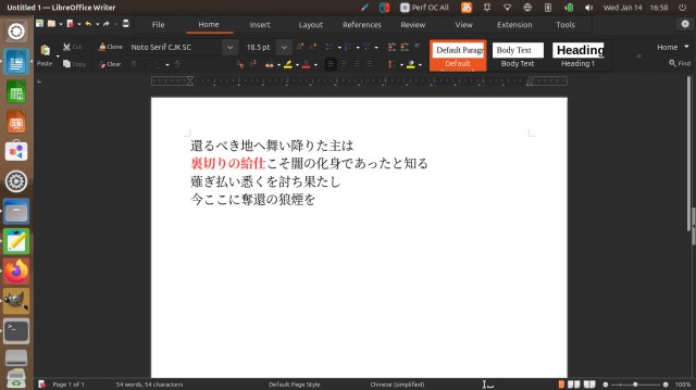 一応オフィスアプリはインストールされている。Linux版のMicrosoft Officeはないので、代用の無料オフィス「LibreOffice」が入ってる。