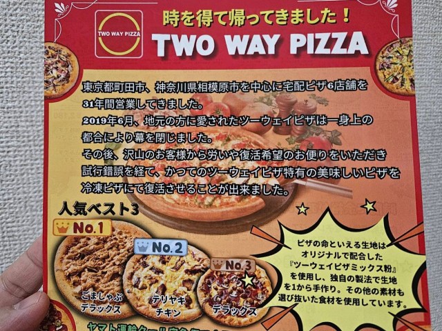 なお、TWO WAY PIZZAは町田&相模原エリア限定で営業をしているお店となっている。友人の家も相模原に近かったはずなので、恐らくここの商品で間違いないはずだ。