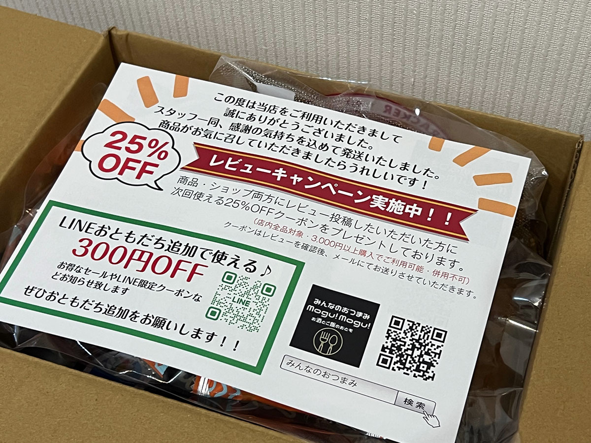 最初に、「てきとー」福袋について簡単に説明しておこう。私が見つけたのは「みんなのおつまみmogu! mogu!」が楽天市場で販売しているもので、購入時の価格は4968円。