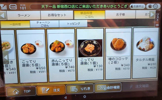 中に入って着席すると、新規の店舗ゆえに注文用のタッチパネルが用意されていた。個人的にこの形式の「天一」は初めてであった。