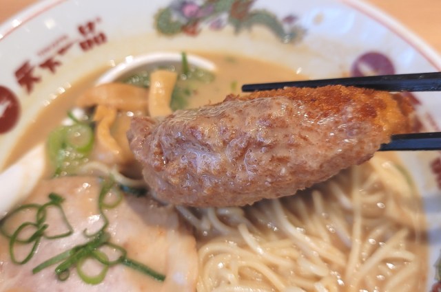 ▼「天下一品」の、絶品のコロッケ