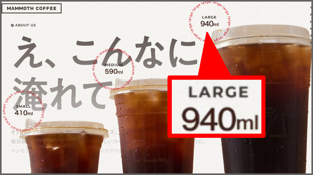 【検証】韓国発「マンモスコーヒー」のLサイズはスタバのベンティより多い? 並べて分かった「サイズ設定」の差