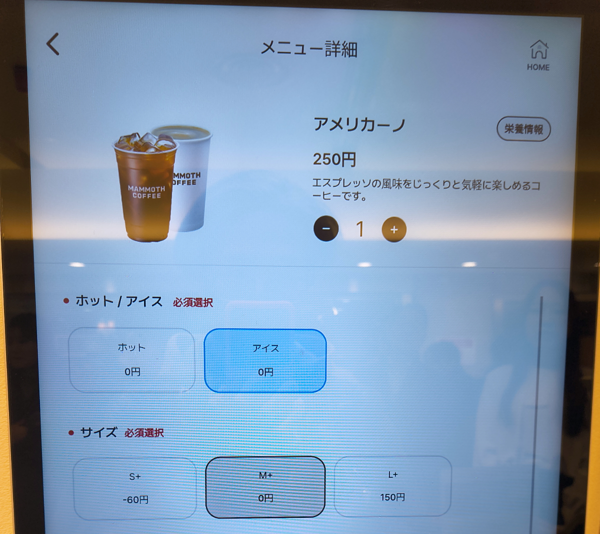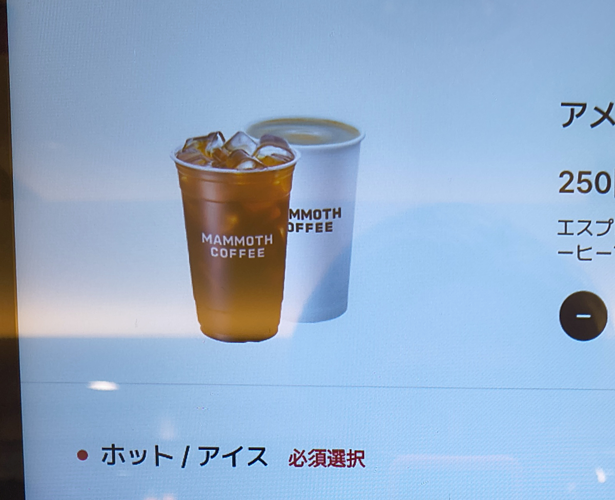 ちなみに券売機の写真を見ると、アイスもホットも同じくらいのカップサイズに見えるけど、これはイメージなのかもな。