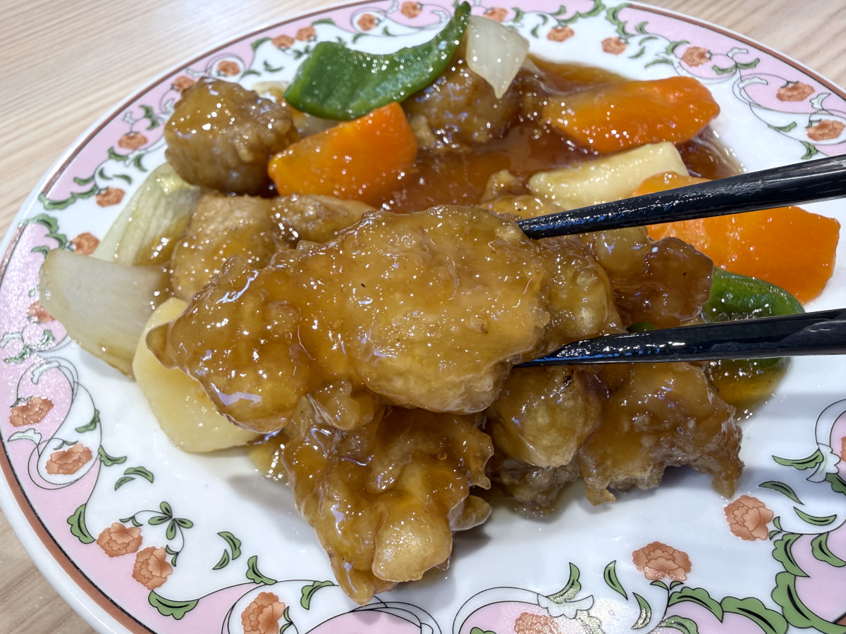ゴロッとした豚肉に絡むのはいわゆる甘酢あんで、それなりに強い甘みとほど良い酸味が印象的。おそらく誰が食べても納得するであろう “THE・王道” の酢豚であった。