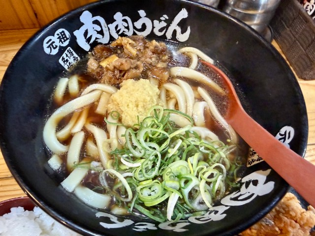 夕飯は薬院駅近くの「肉肉うどん」へ。少し移動すれば、こうした福岡グルメが選び放題になるのもこのエリアの強みだろう。