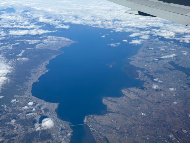 ▼帰りの飛行機からの景色が絶景だった。琵琶湖も富士山もめちゃくちゃきれいだった!
