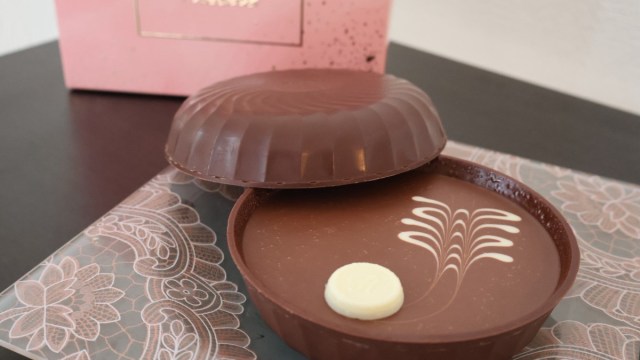 一般的な生チョコは、紙箱やプラスチック容器に入っていることが多いが、この商品はショコラで作られた薄い器の中に、生チョコが詰められているというのが特徴らしい。