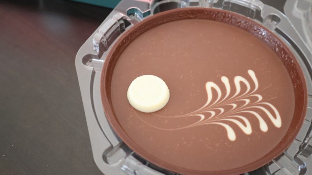 中には、ラテアートのような模様がホワイトチョコレートで描かれているほか、丸いホワイトチョコレートのトッピングも添えられている。