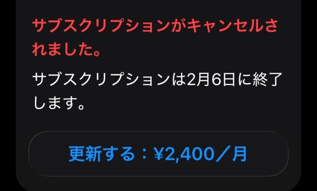 我が家ではすでに解約を済ませているが、サブスクリプションは2月6日まで継続されるため、再契約は来月になる予定だ。その際は、くれぐれも公式サイトから手続きするよう妻に伝えておこうと思う。