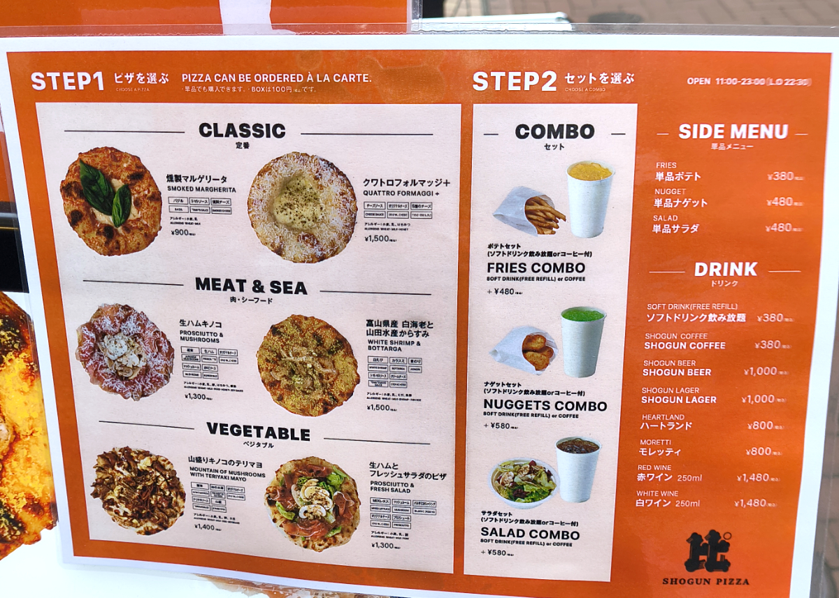 そんなわけで、ここはショーグンピザになりました。表にデカい字で「比゜」って書かれている。お店が掲げる「比類なき1枚」の「比」とピザの「ピ」を兼ねた意味があるのではないだろうか。