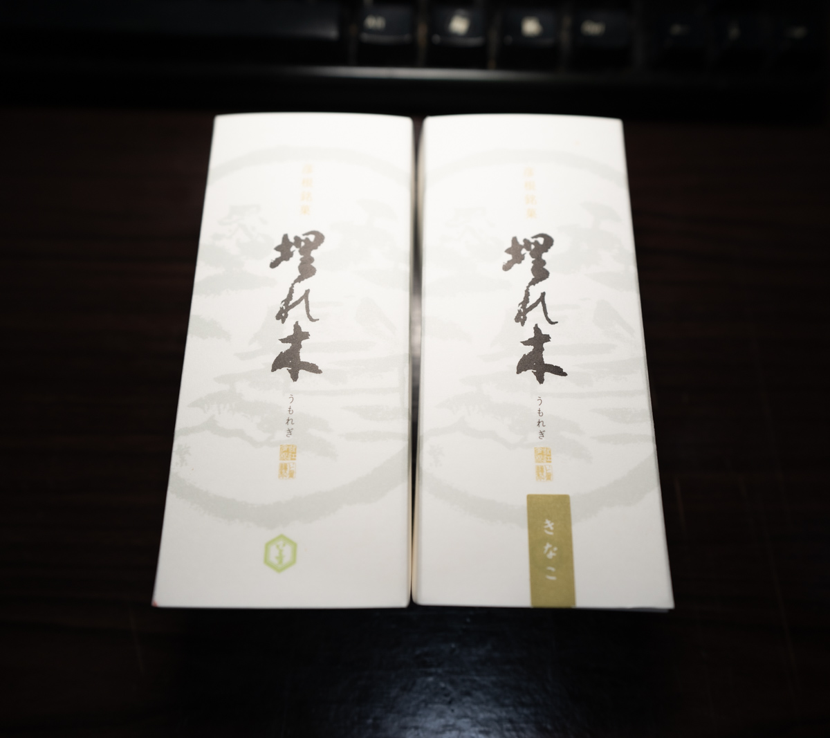 銘菓「埋れ木」はガチだ! 今なら季節限定のきなこVerも買えるそう。和三盆糖と求肥の菓子だ。どちらも3個入りで594円。