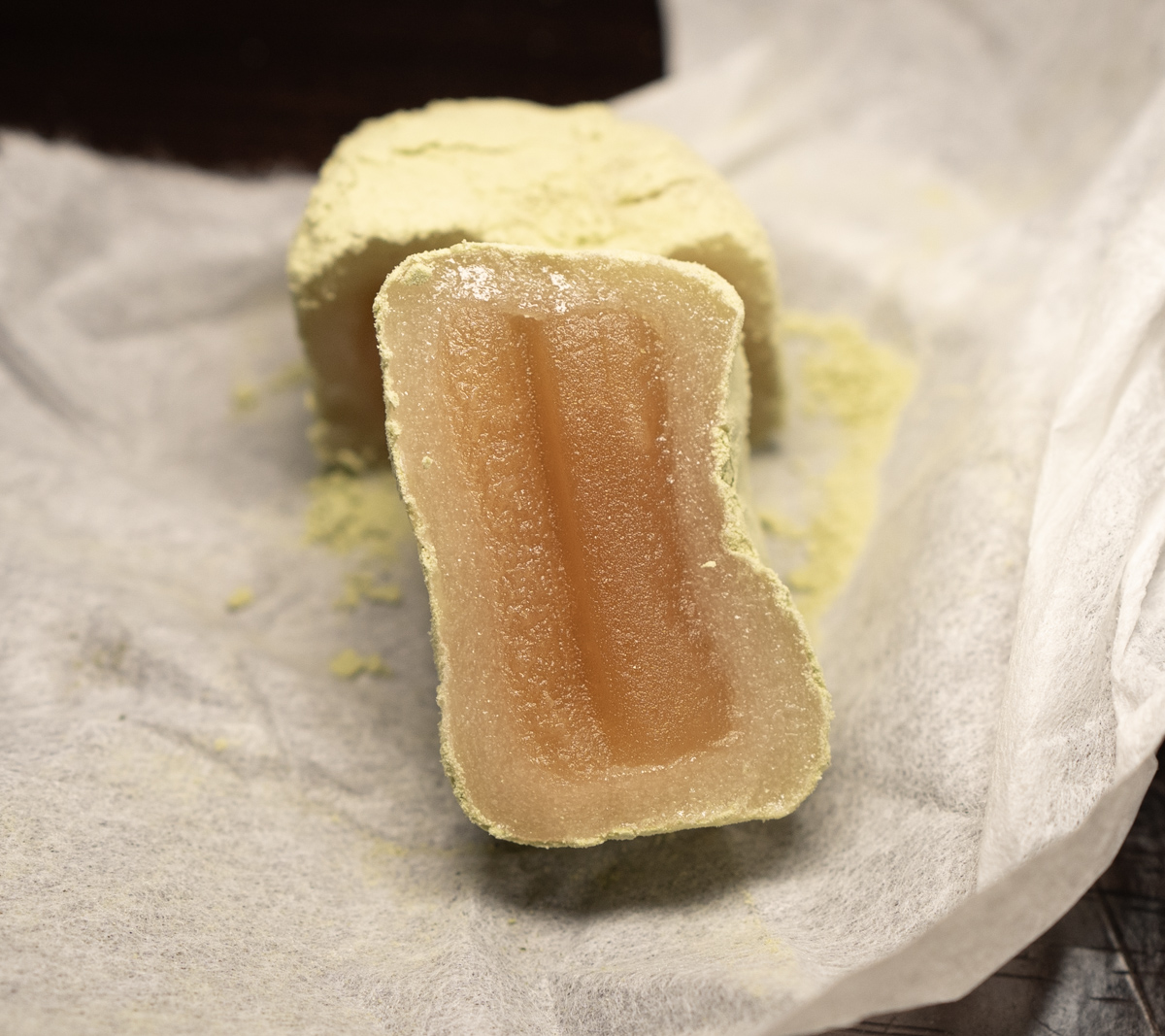 ノーマルは表面を覆う和三盆糖が抹茶風味。ちゃんと植物であることがわかるタイプの抹茶パウダーで好感度が高い。