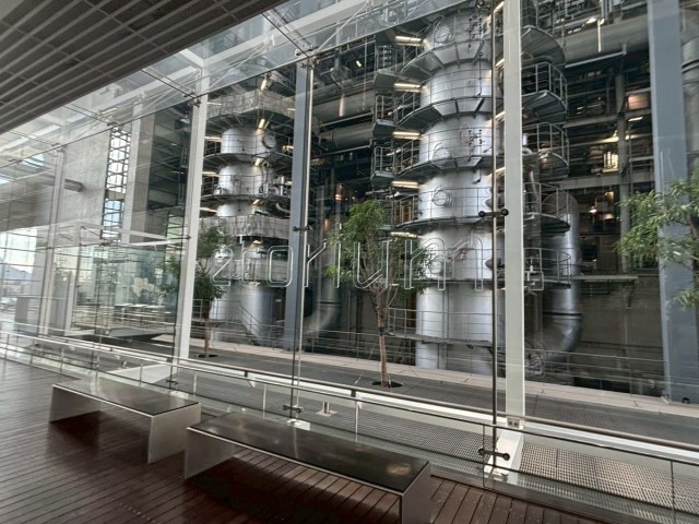 環境(Ecology)と吹き抜け空間(Atrium)を掛け合わせた造語で、工場の内部から海辺へと一直線につながる、ガラス張りの長い通路になっている。