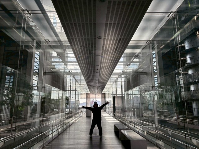 この日は風がとにかく強く、通路を吹き抜ける風が容赦なく冷たい。とにかく寒い。……のだが、せっかくなので、とりあえず記念にジャンプしてみた。