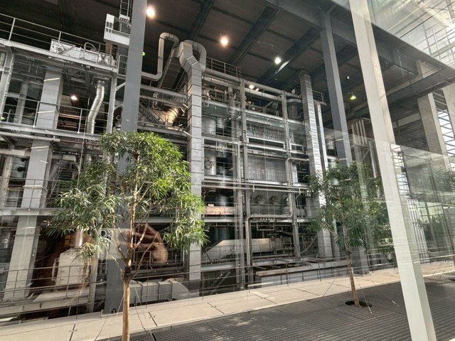 余計なものがない空間、差し込む自然光、静かに並ぶ構造物。噂に聞いていた通り、ごみ処理場というより、まるで美術館のような空間である。