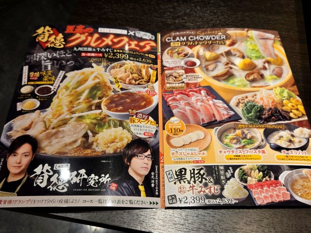 フェアの名前は『背徳 至高のグルメフェア』。なんかしゃぶ葉っぽくない凄いネーミングだと思ったら、料理研究家リュウジさんと、人気声優・安元洋貴さんが共同開発しているらしい……!