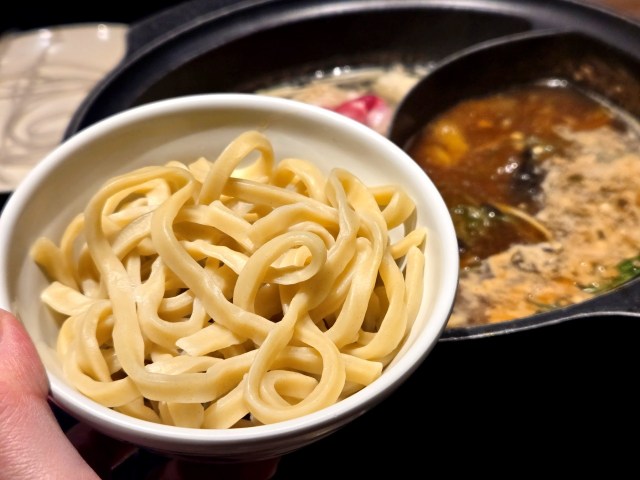 濃い味のおだしをたっぷり吸い、茶色くなったワシワシ麺はこれまた背徳の味。キャベツやもやしを茹でて上に盛りつければ、しゃぶ葉で二郎系風のガッツリラーメンを楽しむこともできちゃうぞ!