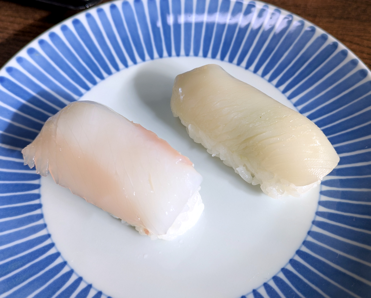 元祖の方はスシローと同じく定番に加えて、小肌やエンガワなどもあり……