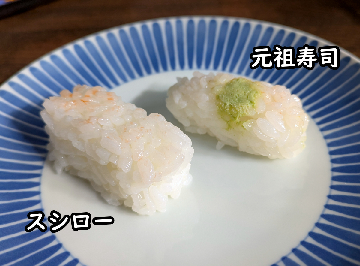 さて、実際に食べてみると、やはりシャリの食感が全然違う。スシローは作り置きであることも理由のひとつではあるが、口の中に入れるとシャリがぶつかってくるような感触がある。くっついた米粒を歯で崩すようなぎこちなさを覚える。