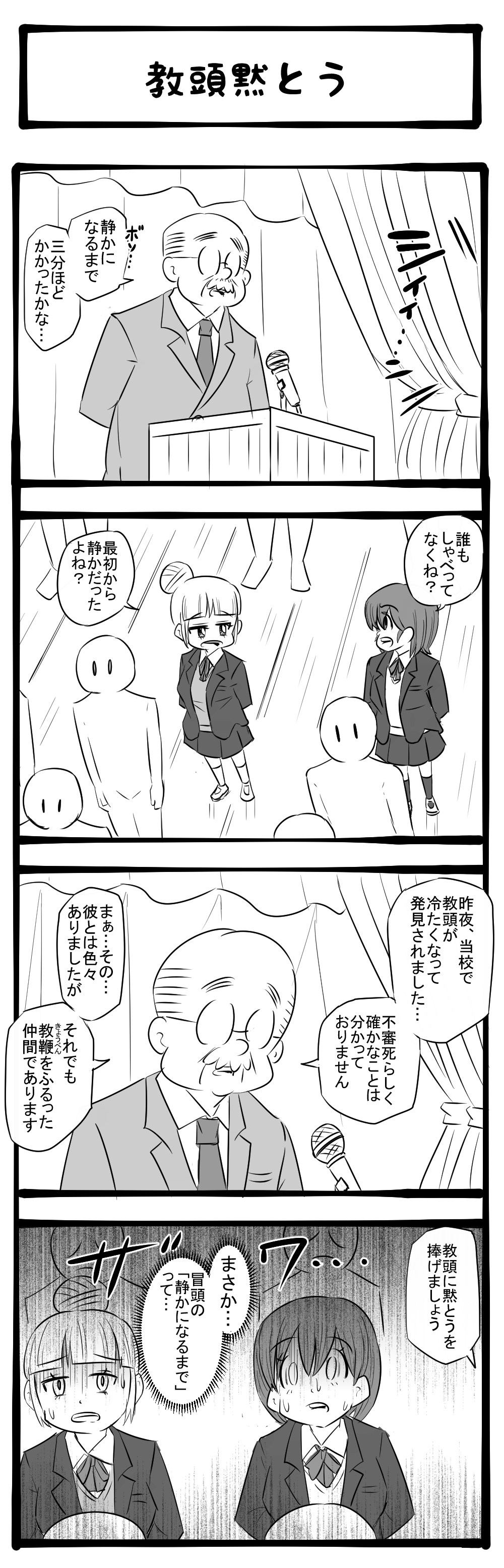 ソレっぽいこと言ってたな! 思わず校長がボソッとつぶやいた言葉! 四コマサボタージュBYD第286回「教頭黙とう」