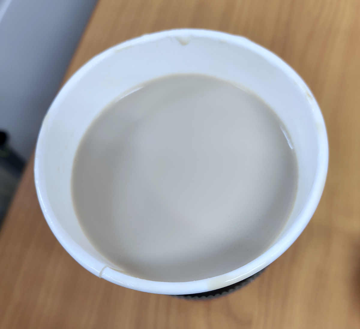そりゃそうか、10分も持ち歩いてきたんだから、その間に泡が消えてしまった。その場で飲めばよかった。すぐ飲まないならミルクフォームにすべきじゃなかったんだな……。