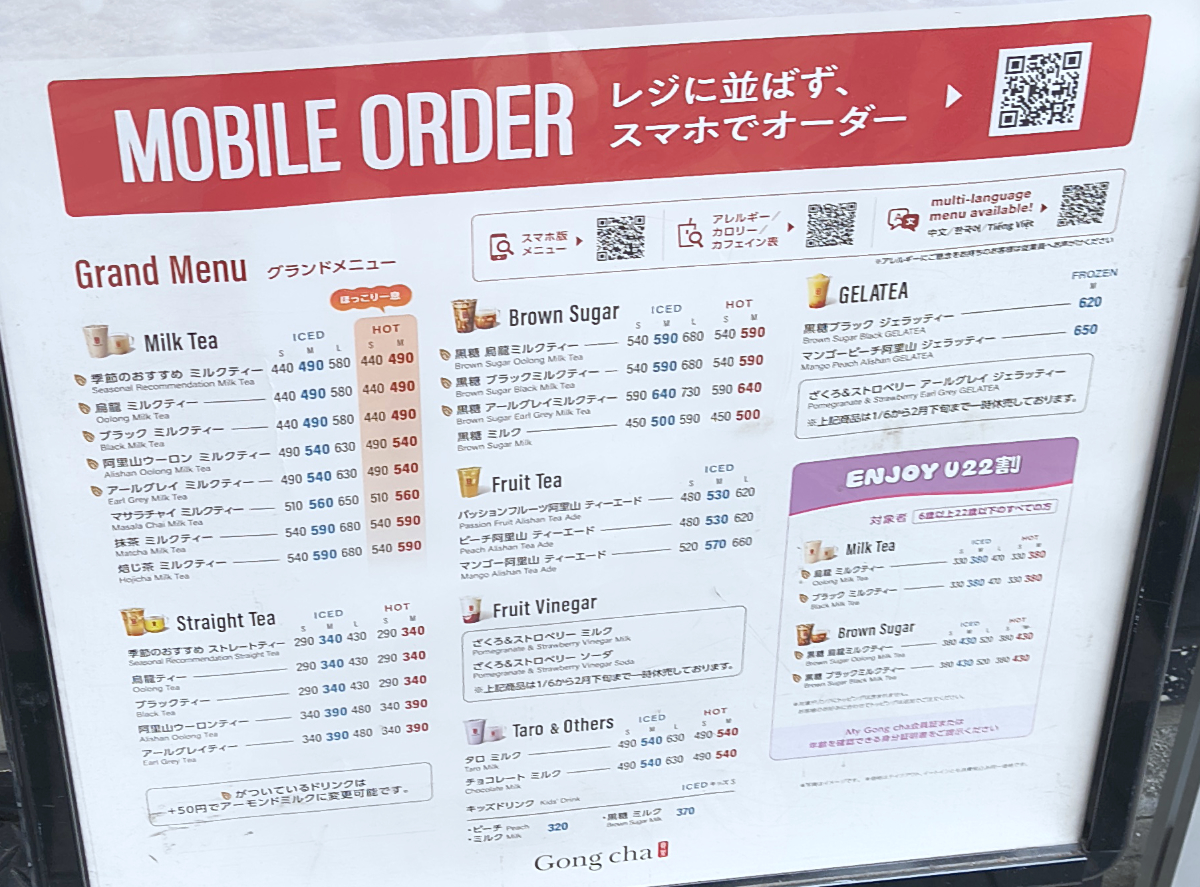 そんな緊張と興奮を、数年ぶりの「ゴンチャ」で味わった。前回利用したときから7年もの月日が流れており、オーダーの仕組みが変わっていて、どう頼んでいいかわからなかった。