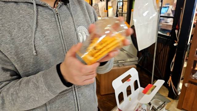 味付けが完了すると、お持ち帰り用の豪華なラッピングを施してくれる。