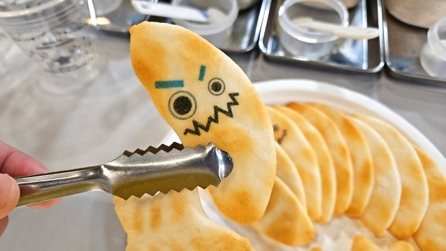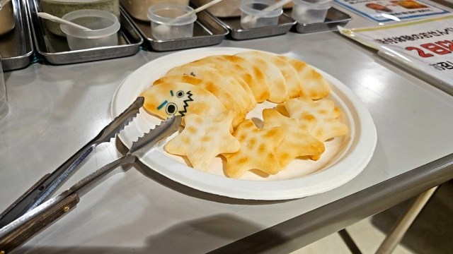 準備が整ったところで体験ブースに行ってみると、ホカホカのせんべいが用意されていた。