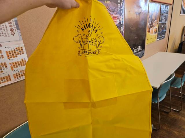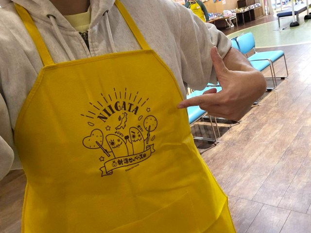 案内があるまで、ばかうけエプロンを着用して待っていて下さいとのこと。