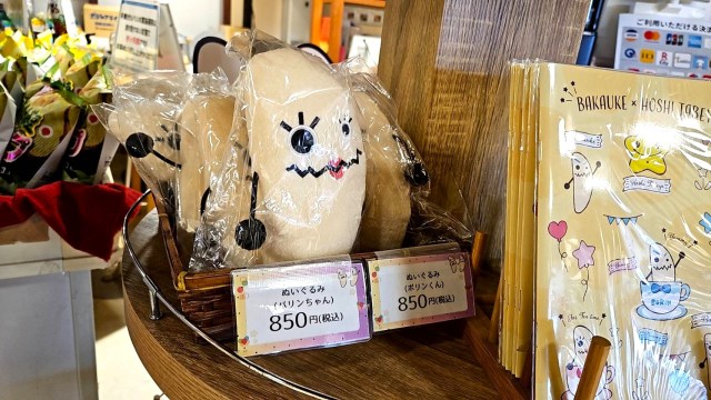 ばかうけのキャラクターがデザインされた、オリジナルグッズも大量に販売されていた。