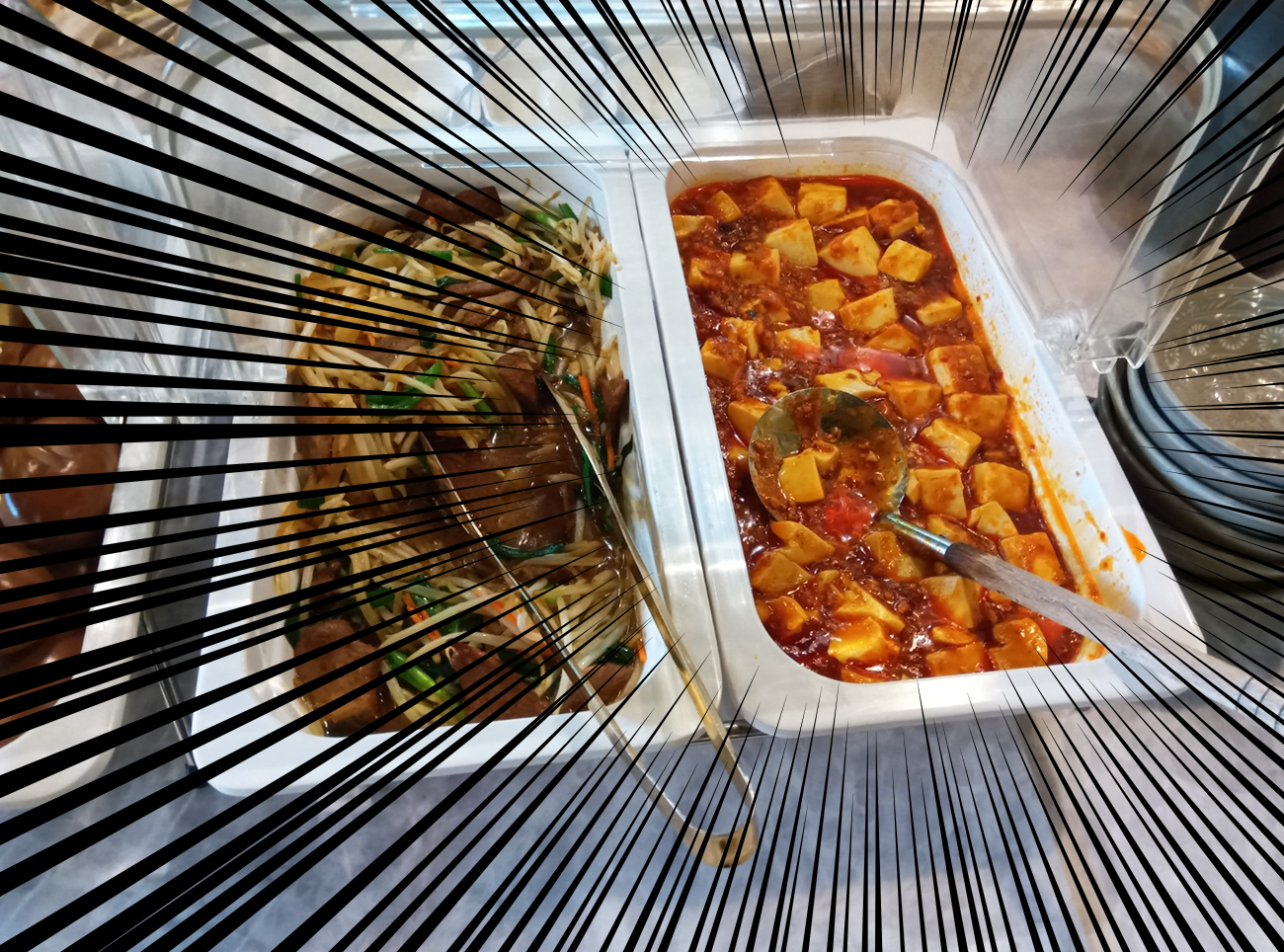 麻婆豆腐と麻婆茄子で迷って、一瞬茄子が食べたいような気がして麻婆茄子を注文した。メニューの決断で優柔不断になりがちな私。うーん、やっぱり麻婆豆腐も良かったなあ。そう思いながら、食べ放題コーナーに行ってみたところ、衝撃の事実を目の当たりにした。