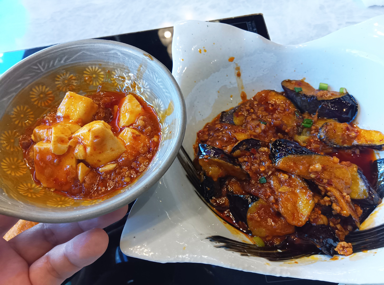 味が違う……! 辛さがまろやかめな麻婆豆腐に対し、麻婆茄子はビリビリ辛い。麻婆豆腐は単品でいける反面、麻婆茄子はご飯がかっこめる強い味付けだ。コントラストからサラダとかがめっちゃウマイ。この辛みのグラデーションはアリな気がした。