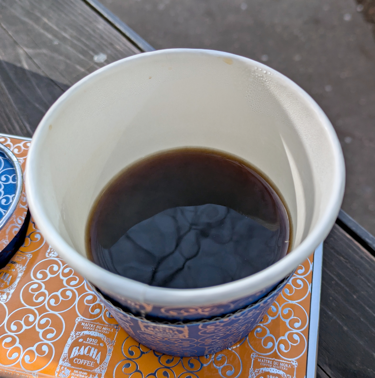 そんなわけで、バシャコーヒーでテイクアウトをお考えの人は、紙トレイで渡されることを覚えておいてほしい。晴れた日なら公園で飲むのも良いけど、雨の日は用心した方が良いだろう。いずれにしても、クロワッサンはおすすめだぞ。