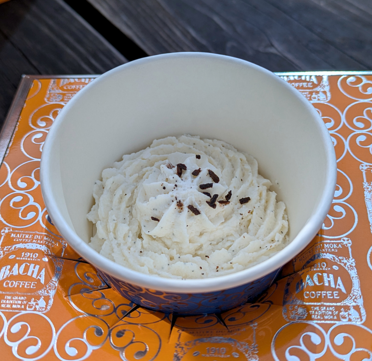 カップと一緒について来たのは、バニラビーンズ入りの「シャンティクリーム」だ。これは油分が少なく、コーヒー本来の味を損なわないクリームとのこと。