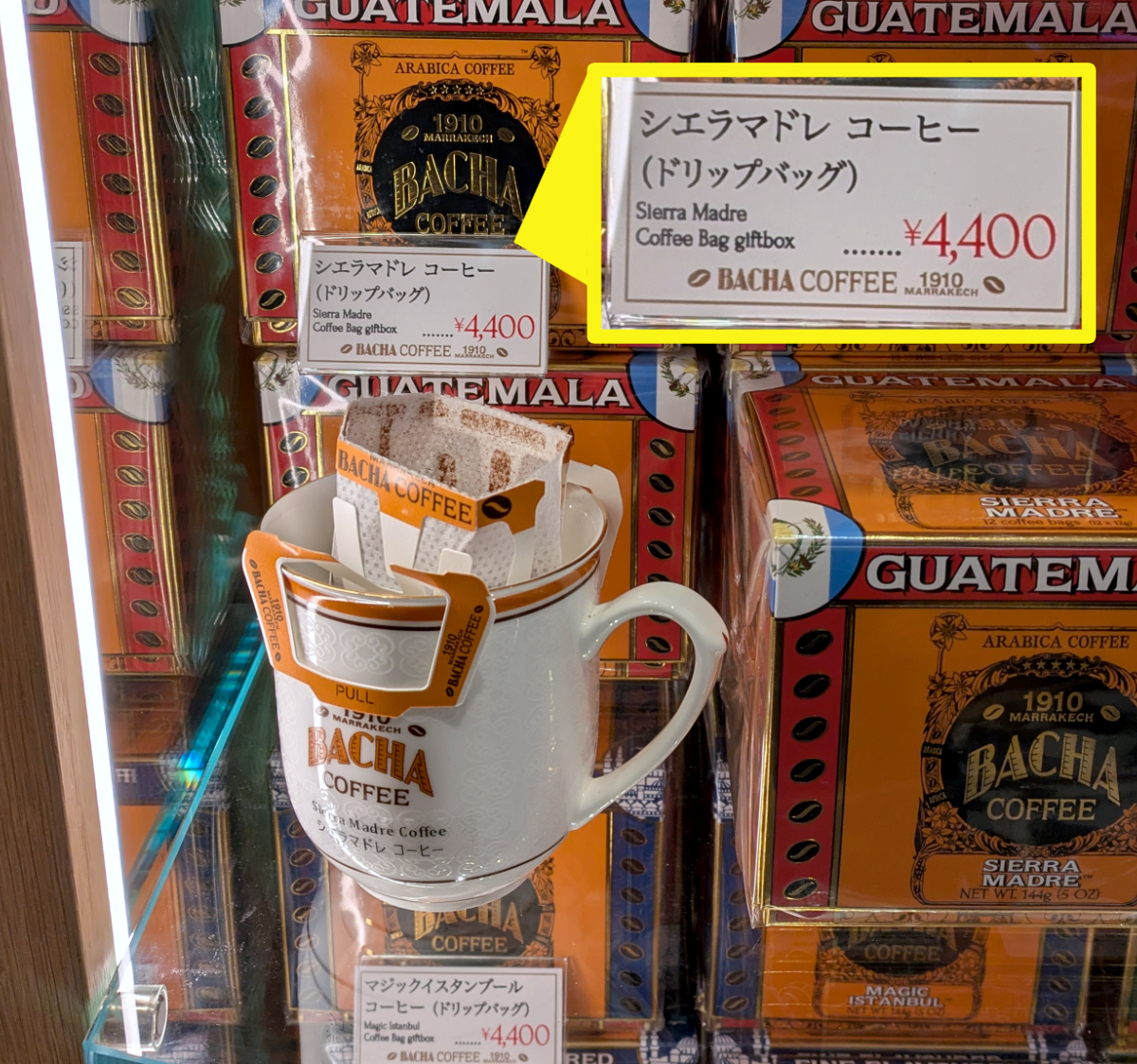 私はとくにギフトを贈る相手がいるわけではない。ただコーヒーを飲みたかっただけだが、店内の商品を見て、すぐに場違いだったと思い知らされた。だってドリップコーヒーが4400円だからね! 12袋入ってこのお値段、1杯約366円。喫茶店で飲むような価格ですぞ、ドリップなのに。