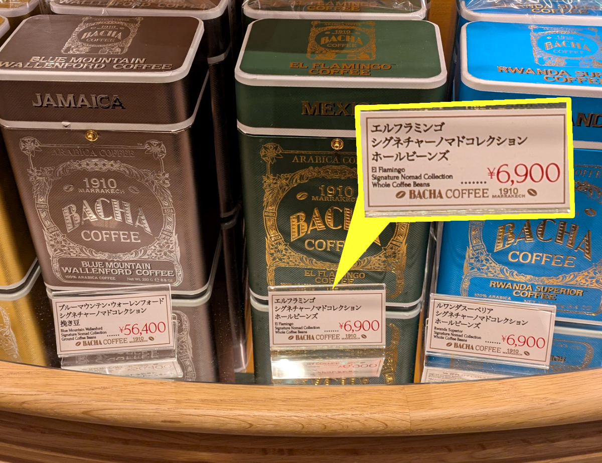 では豆を買おう思ったら、こちらもキャニスター付きだと6900円! ものによって価格は異なるが、だいたい100グラムで2500円~といった感じ。