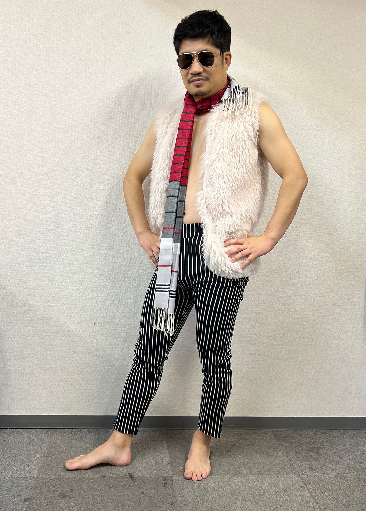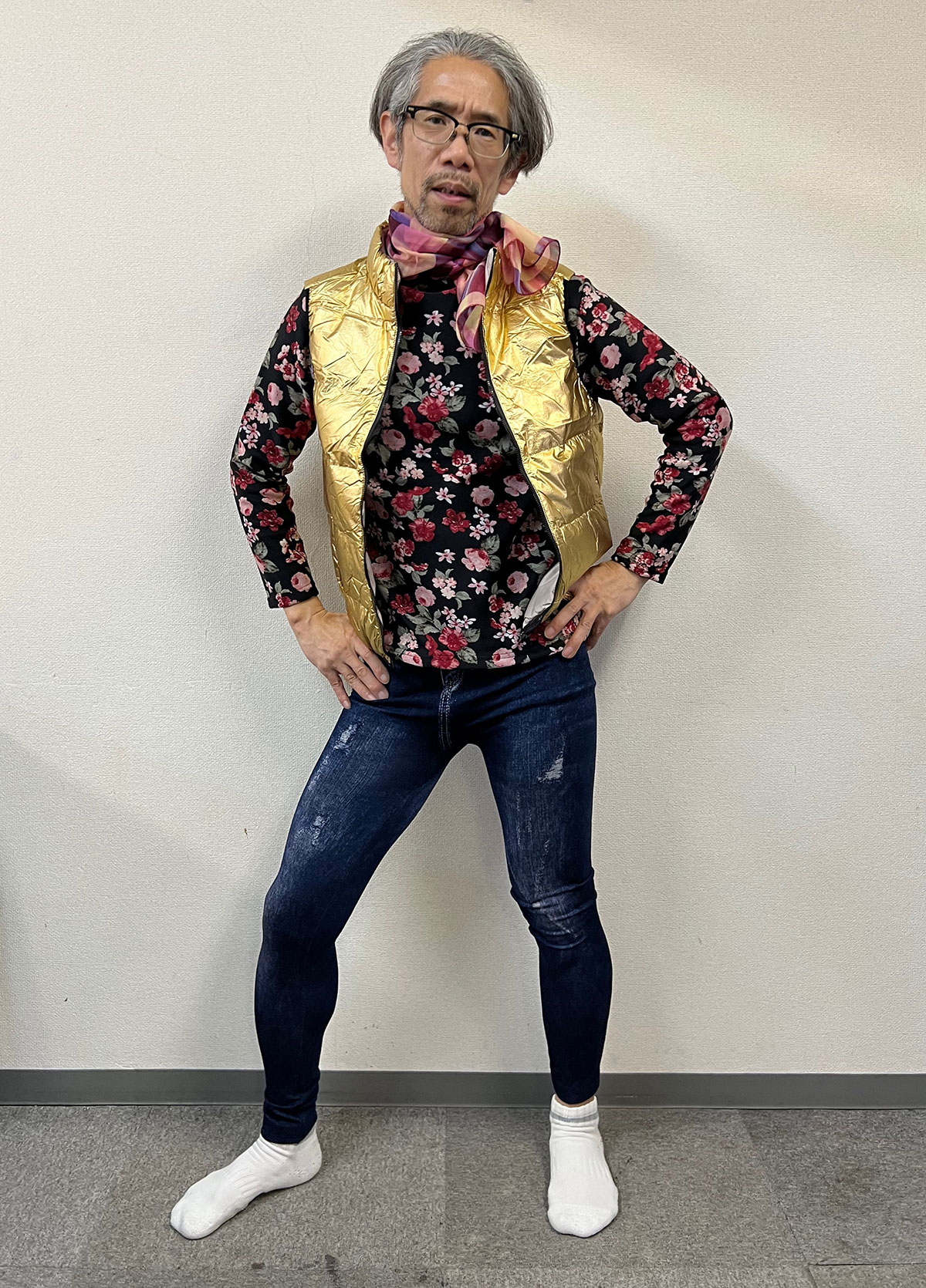 当初ウィークポイントかと思われたインナーも、金のベストやスカーフと合わせることで “なんとなくロックっぽい感じ” を演出するのに一役買っている。うん、こうして見るとカッコいいインナーと言えなくもない。