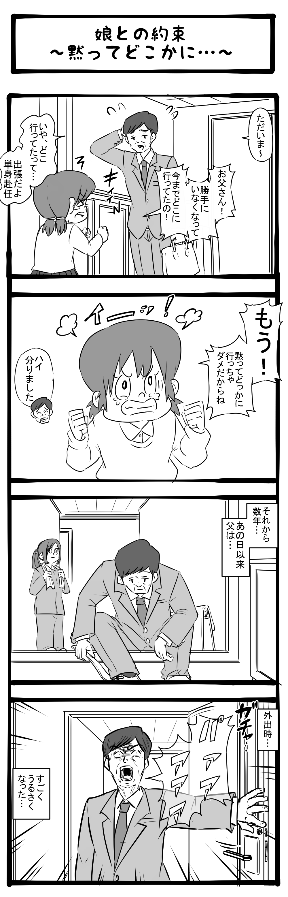 こだます雄たけび! 黙っては出て行かない父! 四コマサボタージュBYD第287回「娘との約束~黙ってどこかに…~」