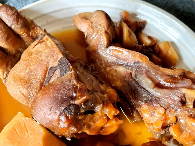 味付けは醤油、みりん、かつおぶしと生しょうが。さらに今朝は7時から煮込み始め、その結果、11時半くらいに指が取れたという。これは本当に料理の話なのか?