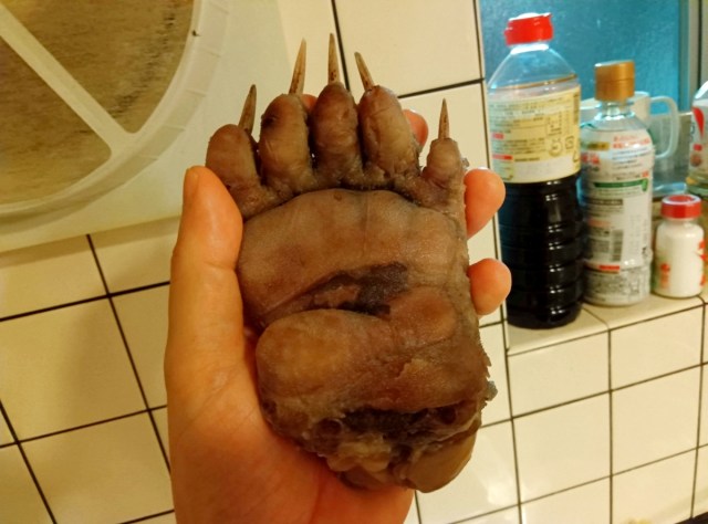 ▼煮込む前の熊の手。あまりにも “手” すぎる。
