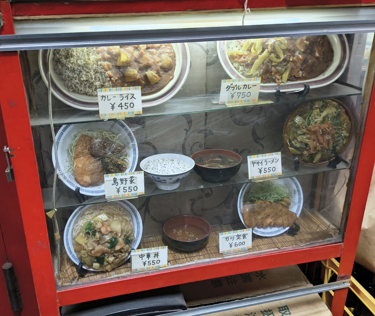 ずっと前からあるメニューのディスプレイ。品揃えはほとんど変わっていないし、価格もあまり変わっていない。利用する身としては有難いことだけど、昨今の飲食業の事情を鑑みると、素直に喜べないところもあるかな。
