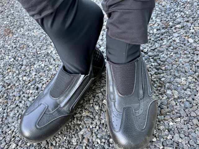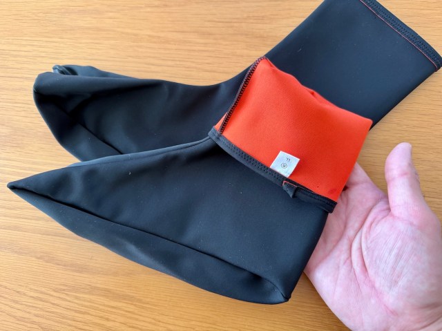 たぶん簡易的なウェットスーツみたいなものなのだと思う。サイズはS(24.0〜26.0cm)・M(25.0〜27.0cm)もある。靴下の上に履く前提だから少し大きめを選んだ方がいいが、大きすぎると靴が履けなくなるので要注意。サイズ選びはかなり重要だ。