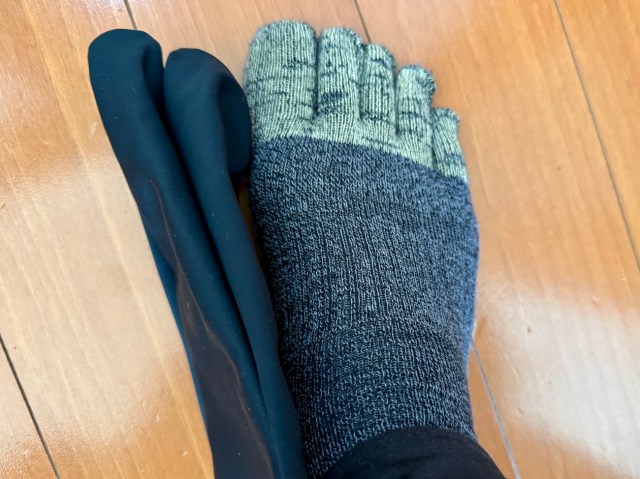 あとで知ったのだが、先丸タイプも存在するらしい。日常使いをするなら先丸タイプ一択だろう。指付きタイプは「5本指ソックス」もしくは「足袋」前提なので……正直ミスったと思っている。まあ仕方ない。