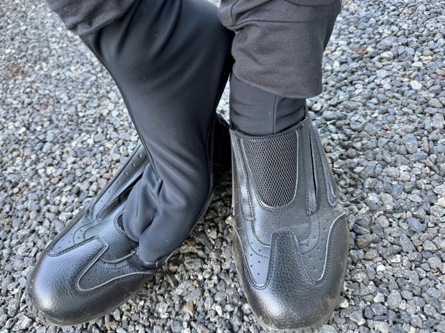 んで、見た目より重くない。履き心地はかなりタイトだがそれで良い。ゆるいと靴の中でズレそうだし防寒アイテムは密着すればするほど効果を発揮してくれそうな気がする。