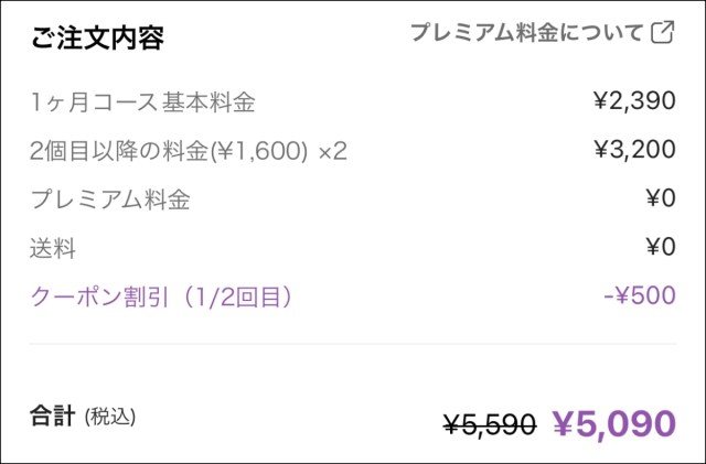 今回は検証用に思い切って3個で注文してみた。月額2390円に、2個分プラスで3200円。そこからキャンペーンで500円割引されたため、合計は5090円。